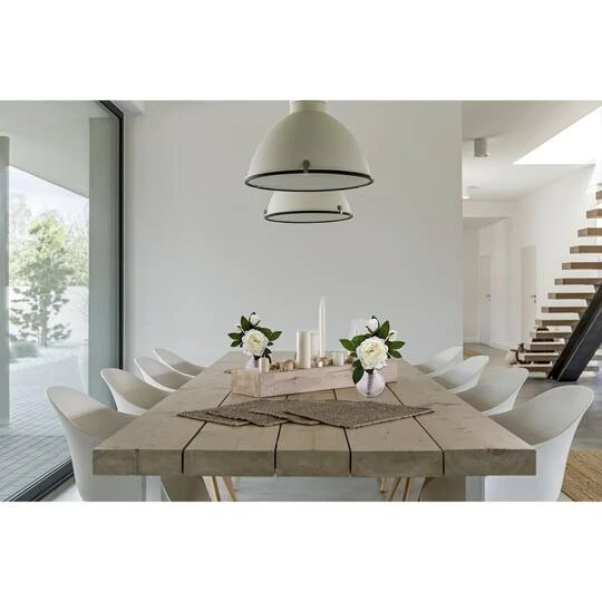 Resembling an old-fashioned rose, the double-bloom peony is an elegant accent. These budding to full bloom peonies are complete with a textured vase perfect as a centerpiece. Place on a bookshelf or accent table for a chic touch to your Farmhouse style home.