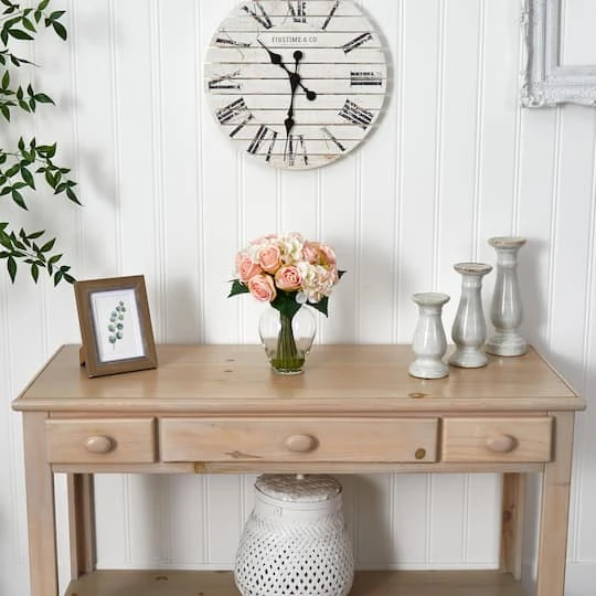 Incredibly lifelike, well-detailed pink and white blossoms are coupled with large green foliage that make up this artificial rose and hydrangea bouquet arrangement. Use this lush 12-inch accent as a finishing touch to your bathroom, kitchen, or dining area décor setup. You can also pair a few of these together to make a dramatic impression on your entryway table.