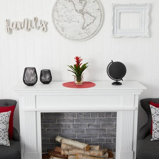 Add some fun décor to your desk with this tropical bromeliad plant. Lush green leaves grow vertically around the floral focal point. Comes in square glass vases with neutral pebbles and faux water.