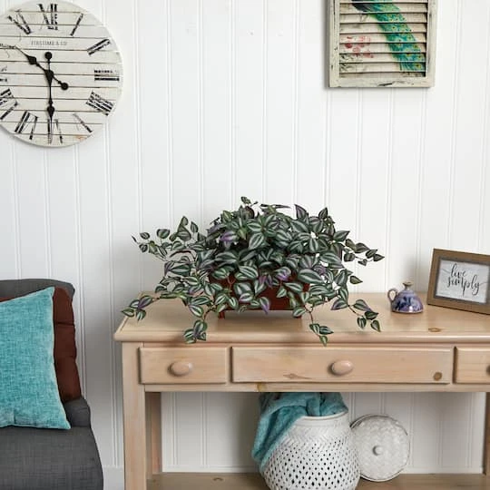 Engulfing the included planter, the lush, variegated leaves with various hues give a lifelike appearance to this artificial inchplant. You can place this plant nearly anywhere to brighten up your home or office.
