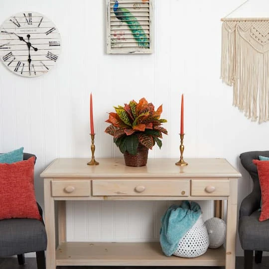 Add explosive colors to empty spaces with this artificial garden croton plant flaunting countless layers of fiery, realistic foliage in naturally occurring hues. Placed in a basket planter, this multicolored plant can easily bring life to bare spaces.