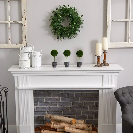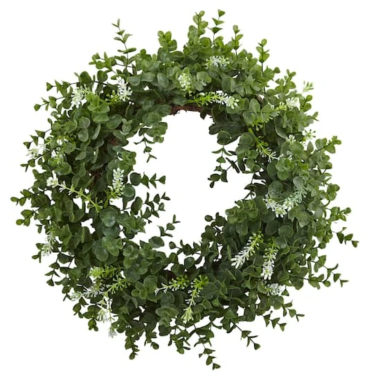 If one is looking for the ideal wreath to hang, this eucalyptus double ring wreath is just the piece for any room. Luxurious green leaves highlight this arrangement, while being dotted with lovely white flora throughout the wreath. Creating a peaceful yet cheerful atmosphere, this wreath will look perfect in any setting or room, no matter what time of year it is.