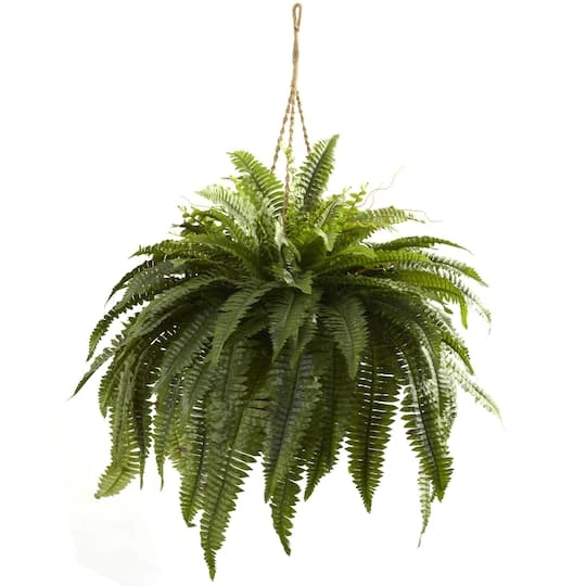 When you need a hanging plant that reflects style and elegance, this double giant Boston fern is an excellent piece to add to your collection. This handsome faux plant comes in a lush green color that is sure to go with any décor, and the delicate leaves of the fronds make this a site to behold. Never needing water, this wonderful piece is sure to brighten any home or office.