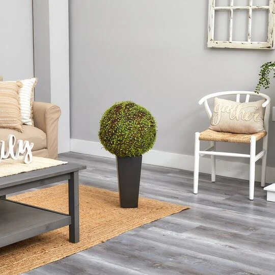Impress your guests with this eye-catching, well-crafted sphere shaped artificial ball plant. It comes in a black tower vase that can sit atop any table, counter, or desk with pride. Dark tones will provide a more toned down elegant look to any room.