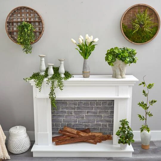 A symbol of spring, you can now enjoy the tulip’s warmth all year long with this Dutch tulip artificial arrangement. A bunch of tulip flowers not yet fully in bloom are accented by green leaves to bring texture, drama and color to spaces in need of a spring awakening. Experience the fresh from the garden feel every season effortlessly without the need for maintenance. Standing 22″ from a stoneware vase with gold trim, this arrangement makes a great gift. Perfect for offices, mantels, kitchens, bedrooms or kitchen nooks. Silk arrangements are manufactured using synthetic materials, such as polyester material or plastic, and are well designed and constructed to be life-like in appearance.