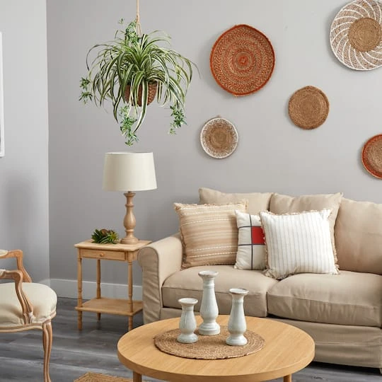 This uniquely crafted spider hanging basket silk plant is the ideal choice to add style to your home. Long wispy foliage extends well beyond the wicker container, and the lush green leaves highlighted with a cream colored pin stripe are sure to satisfy even the most meticulous of critics.