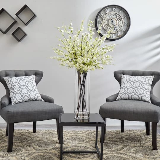 Every year, news outlets report the cherry blossoms blooming. This wonderful plant has been announcing Spring’s arrival for centuries. And we’ve crafted the perfect recreation of this natural wonder. This silk reproduction stands tall, and comes complete with a cylinder vase and faux water.Â