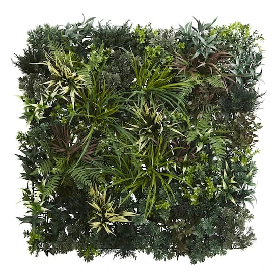 A mix of thick green foliage and small lifelike ferns makes this UV-resistant wall panel appear almost lifelike. Suitable for both indoor and outdoor purposes, it can be used to dress up a bland wall. Place several of these panels on a wall to make a fashionable, natural-looking accent wall.