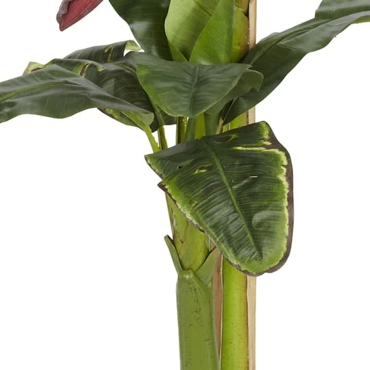 Our multi sized banana silk tree features a five and three foot tall tree. Its thick, shade-giving leaves are a variety of vibrant green hues. The illusion of a real banana plant is enhanced with tiny bananas just sprouting underneath.