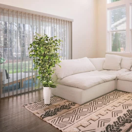 This artificial ficus microcarpa tree beautifully captures a stimulating essence and brightness from the outdoors into any space within your home or office. It is carefully designed with the appearance of a real-life foliage.