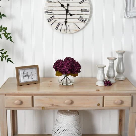 Petite blooming hydrangea bundles in brilliant autumnal colors welcome the new season. Handcrafted and finely shaped, the mixed hues of this arrangement mimic a true hydrangea. With leafy green stems and faux water vase, this arrangement is ready for display. Place the flowers next to candles and books for the perfect coffee table vignette.