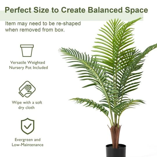 Elevate your indoor space with this vibrant, lifelike artificial palm tree, adding a touch of natural beauty and lush tropical flair.