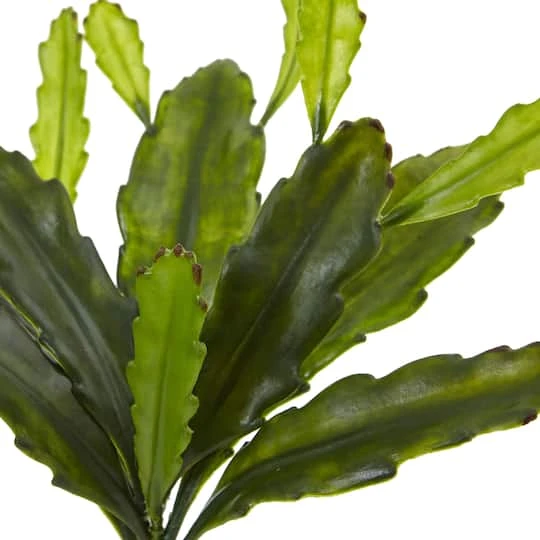 Want to freshen up your floral arrangement? Adding plants with different textures can go a long way in creating an interesting display on your kitchen bar or island. The lobed green leaves of this 14” artificial epiphyllum cactus plant will stand out and fill up any empty spaces in a planter. For added volume, it comes in a set of four, allowing you to create one lush look.