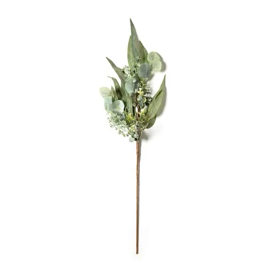 Complete your floral arrangement with this mixed green eucalyptus spray. Place it in a tinted glass vase, teamed with coordinating faux flowers, to adorn your windowsill or side table.